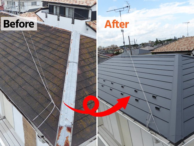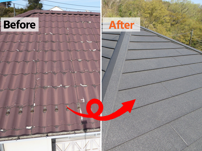 雨漏り修理 スレート屋根葺き替え 【木更津市】