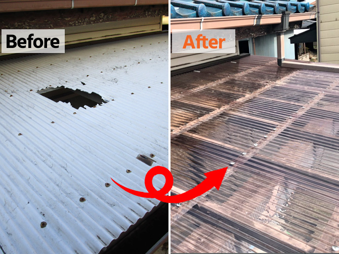 【木更津市】古くなった波板をポリカーボネート製に張り替え