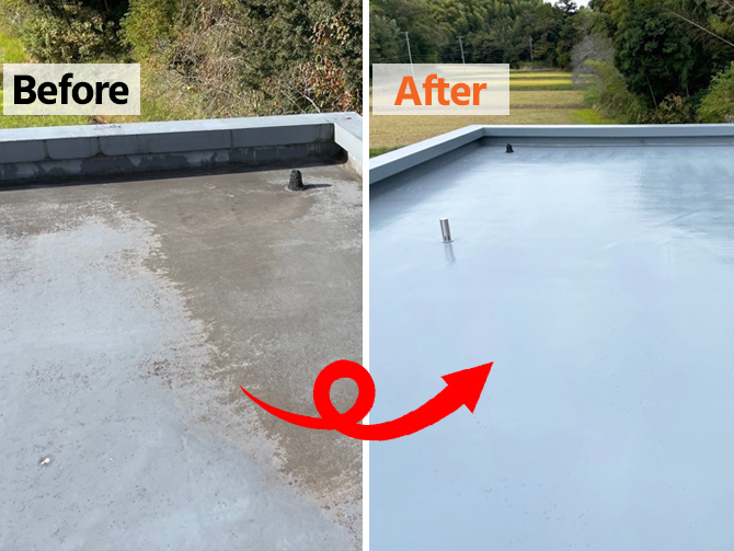 【君津市】屋上・バルコニー防水|5年後に実施したトップコート再塗装工事