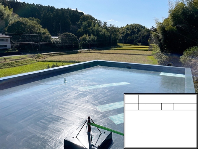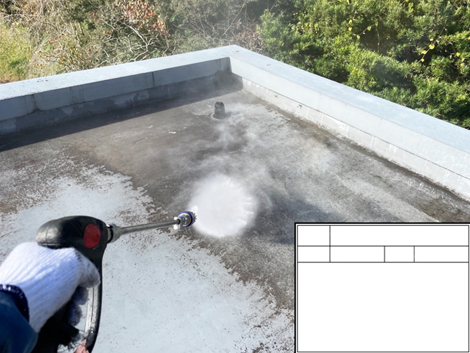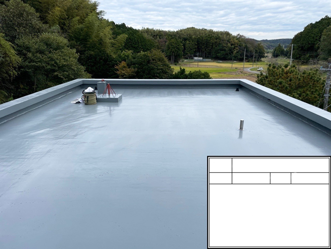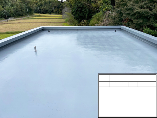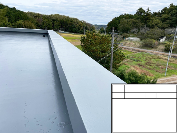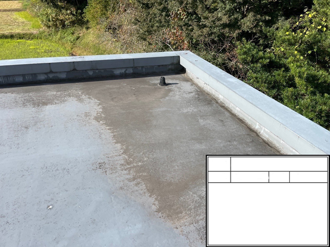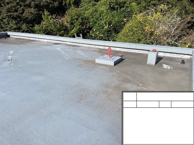 調査の結果、防水層には膨れや損傷がなく非常に良好な状態でしたが、紫外線によるトップコートの劣化が確認されたため、再塗装をご提案しました。