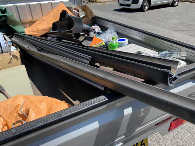 - 古い部材の撤去 割れた軒樋や劣化した金具・継手を外す