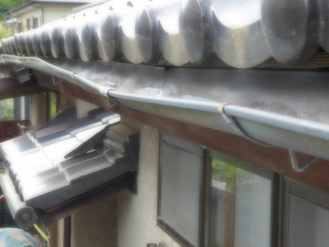 屋根の軒先に取り付けられた半円形断面の軒樋が破損・劣化した際に行う補修作業のことです。