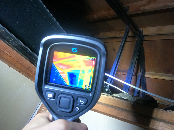 赤外線カメラは、目視では確認できない壁内部や天井裏の温度変化を可視化できる機器です。