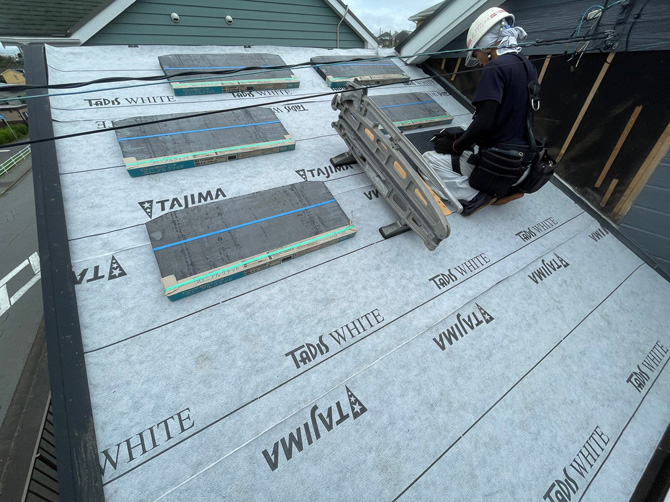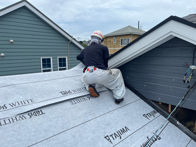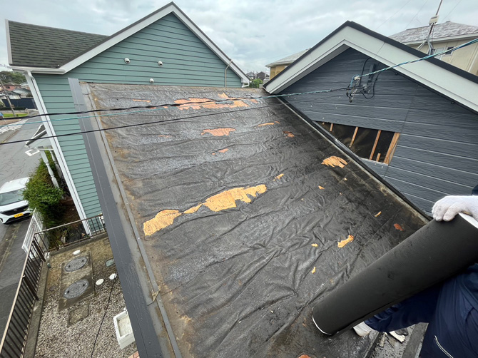 雨漏りの原因の一つだった、アスファルトルーフィングの施工